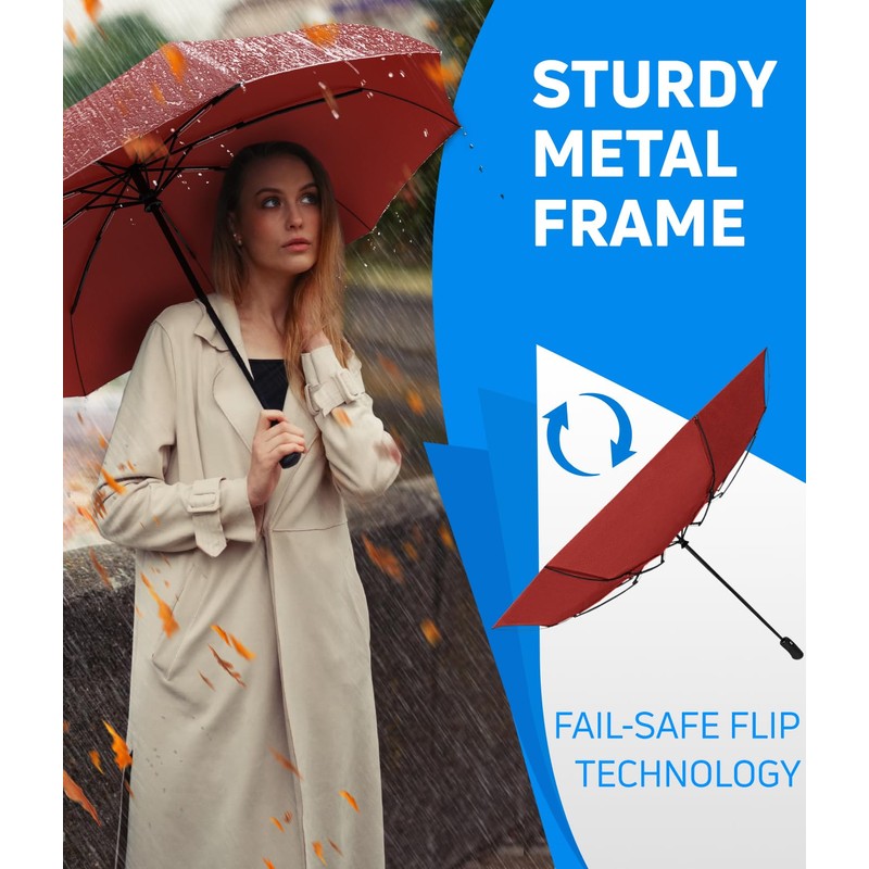 - Fail Safe Flip Technology: The design of our mini umbrella is meant to survive super strong gusts of wind. The fiberglass ribs are equipped with fail safe technology that inverts the canopy when it meets a gust that would tear lesser rain umbrellas apart. The fail safe design means you get a heavy duty umbrella in a compact package