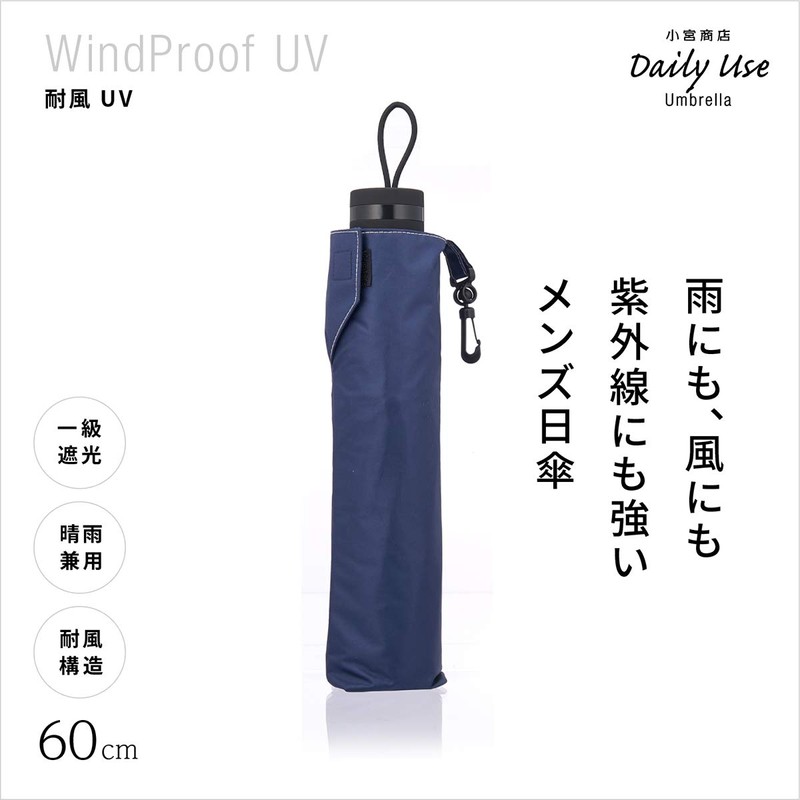 Rain or Shine, Windproof, Gentlemen's PU Coat, 23.6 inches (60 cm), Light Shading Rate Over 99.9%, Lightweight, Komiya Shoten, Plain (Black)