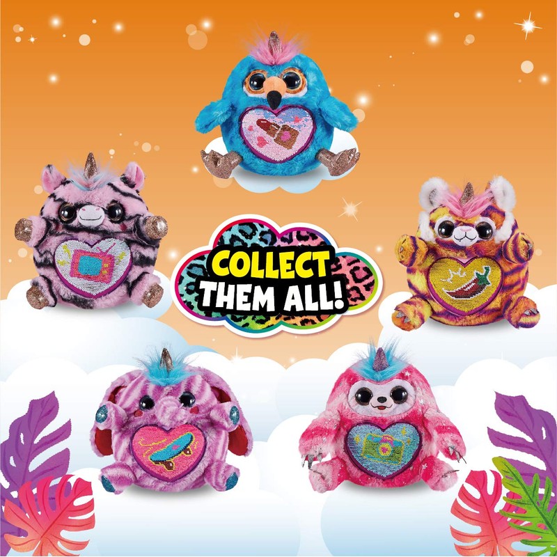 Rainbocorns Wild Heart Surprise Series 3 are full with totally WILD surprises! There are 10 layers of surprise including new wild Rainbocorn characters and the most Wild surprises yet! There are 7 new characters to collect including the new Tucancorn, Zebracorn and even a rare sparkle Slothcorn! Clip their sequin heart to their belly and flip their sequins to reveal what your character loves! Discover even more surprises like nail decals and Rainbocorn wild poop! There are new long tailed Boo-boocorns to collect, including rare twin Boo-Boocorns! Who will you find??