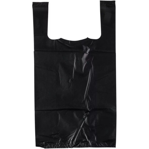 Rainbow 1/8B, 1/8-Size Black Plastic T-Shirt Shopping Bags, 1000/Cs