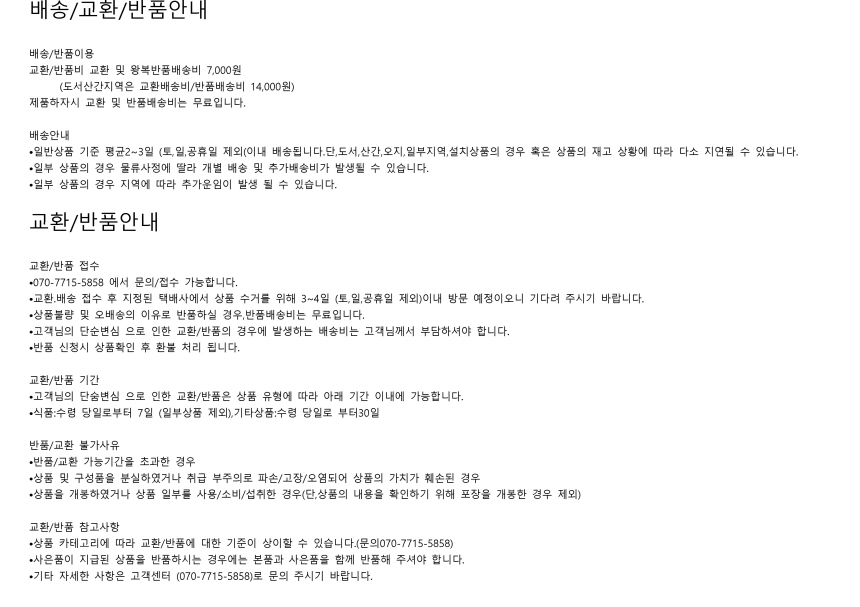 (최소 3500 원의 도서산간 지역 추가 배송비가 부과될 수 있습니다.)
