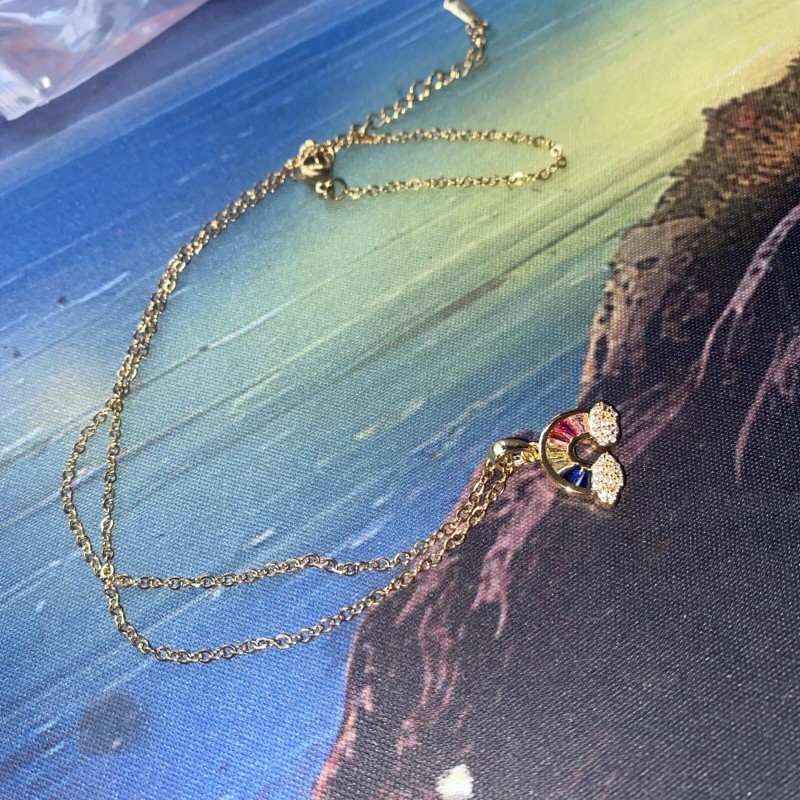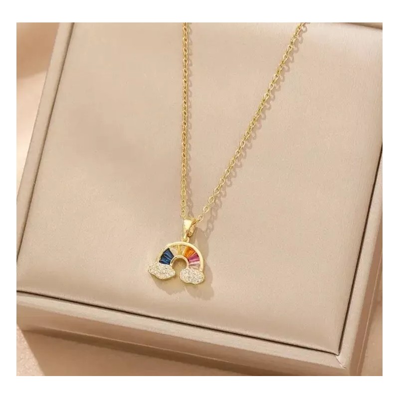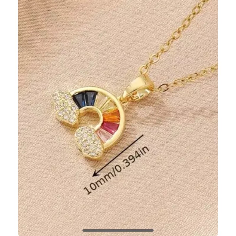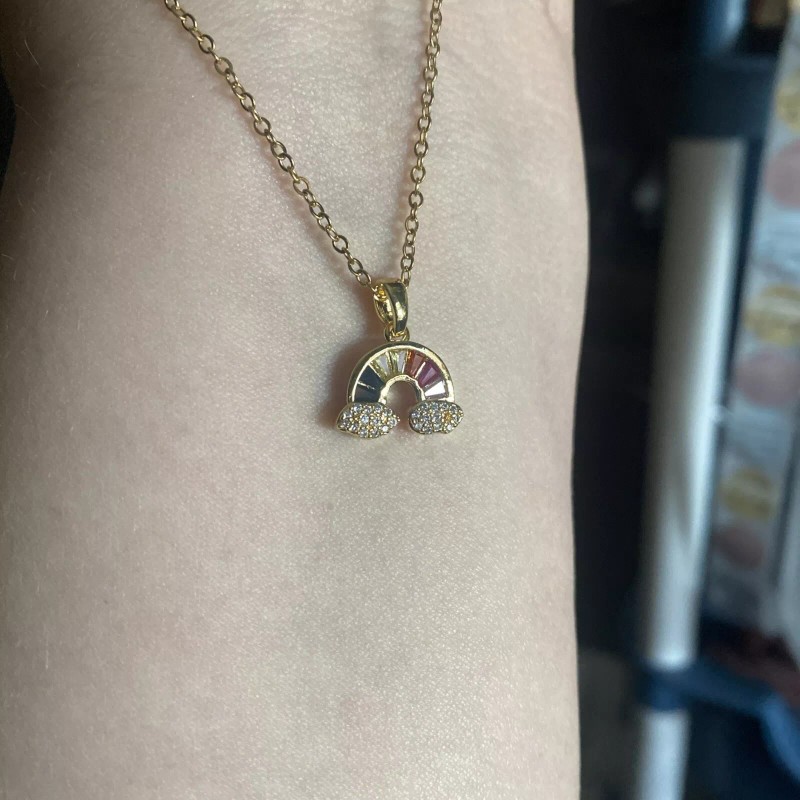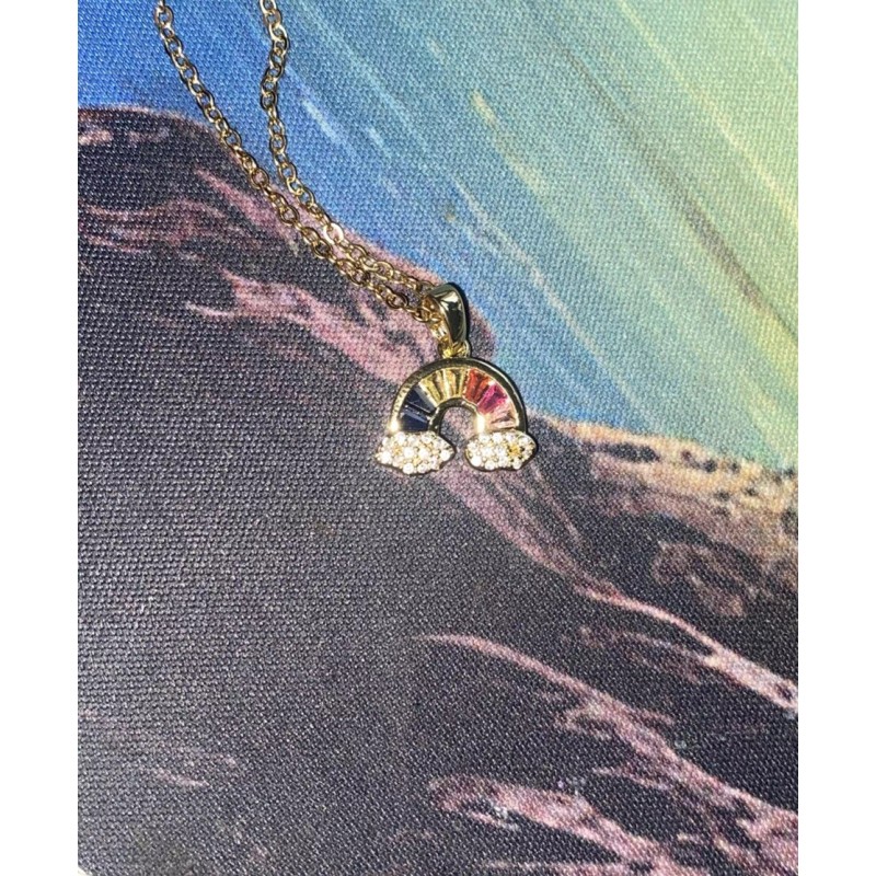 Rainbow 18k Gold Plated Rainbow Necklace & Pendant Minimalistic Gold Chain Small Zircons