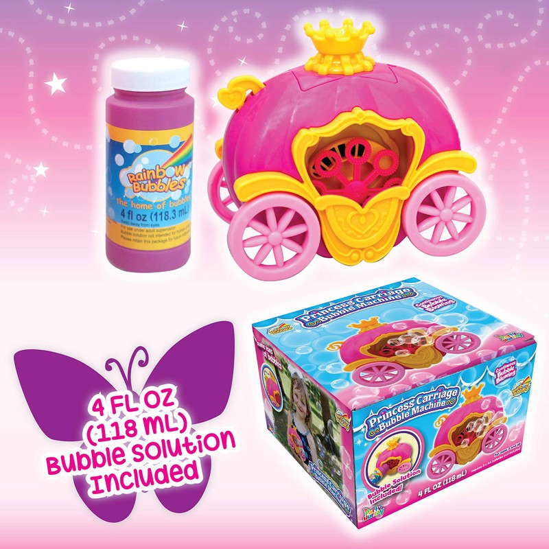 RAINBOW BUBBLES Princess Carriage Bubble Machine (soplador automático de burbujas con 1 solución de burbujas en caja de regalo), Party Hurray