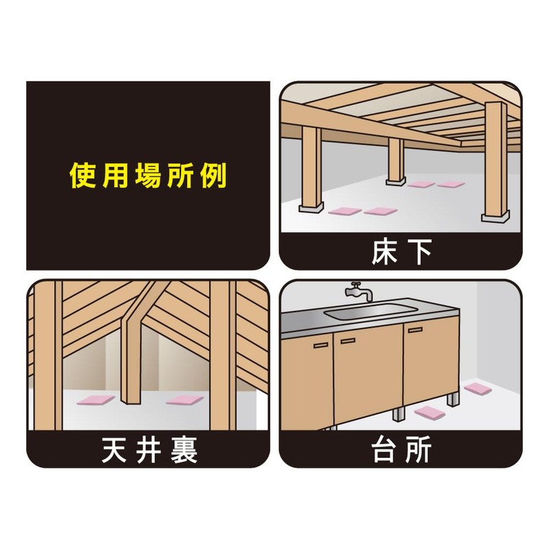 - Placed in the kitchen, under the floor, behind the ceiling, around the trash can, etc. Waterproof type packaging that can be used around water