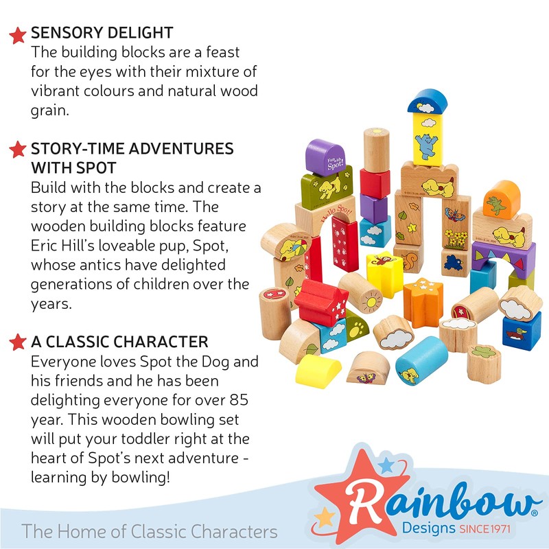 - Adventure with dot: build with the blocks and create a story at the same time. The wooden building blocks feature Eric Hill's adorable puppy spot whose Esken have enjoyed generations of children over the years.