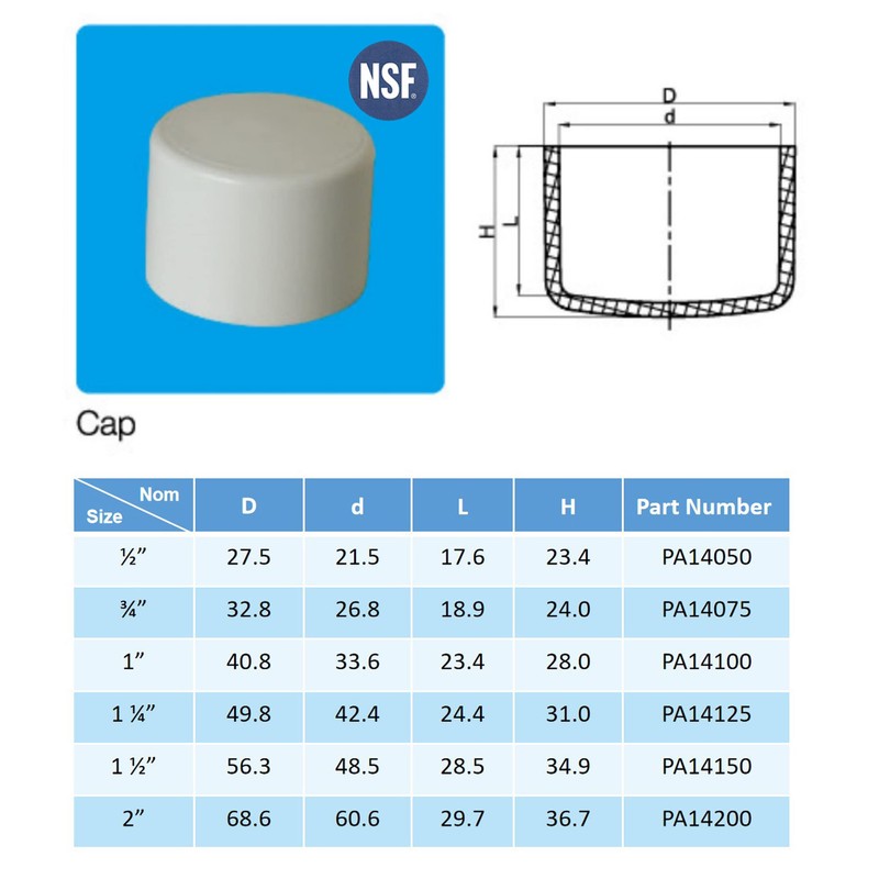 ✔ Our schedule 40 cap pipe fitting meets American Society for Testing and Materials (ASTM) D2466 and D1784 specifications for quality assurance and also it is certified to comply with NSF requirements.