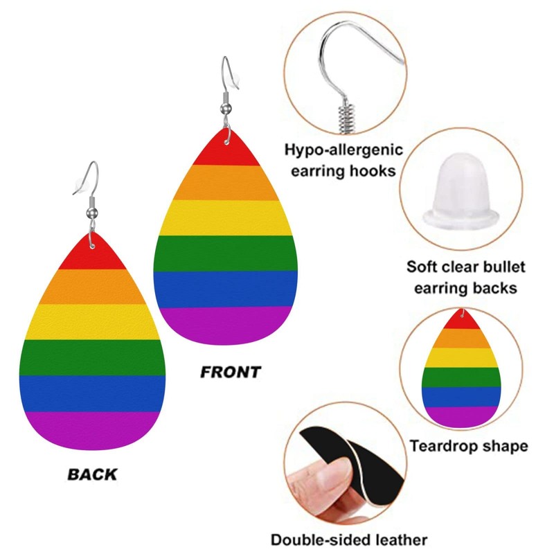Rainbow Earrings Faux Leather Teardrop Earring Lightweight Dangle for Women