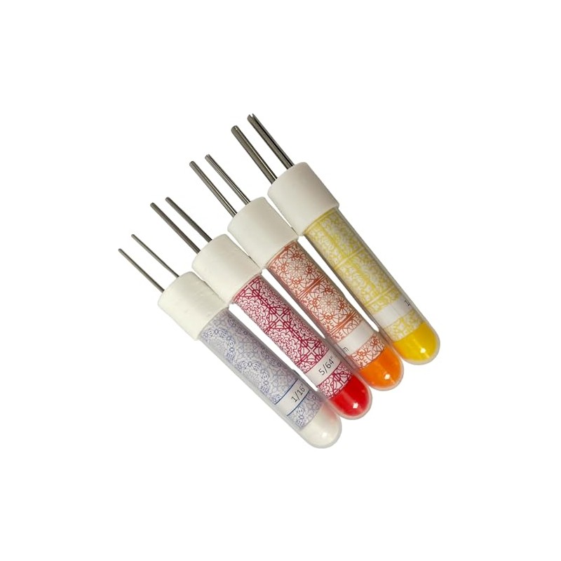 You will get a free packet of 8" long pre-cut paper bead strips when you purchase this item. Set of 4 Rainbow Filigree Double Hole Paper Bead Rollers Now you can make paper beads with 2 holes! Each of these paper bead rollers has 2 stainless steel winding pins about 1-1/8" long so you can make beads up to 1-1/8" long. If you already know how to make paper beads and you want to make beads with two holes, you need to get this tool! The handles are made with 3D Printed and other plastic parts. They are just over 1/2" in diameter and 3-1/4" long and fit comfortably in your hand! These tools are meant to match the other paper bead rollers I offer in my shop so if you already have them, you can complete your set with these tool! What your package will include is the 1/16", 5/64", 3/32" and 1/8" double hole paper bead rollers and instructions on how to use the tools and how to glaze your beads. All three of the larger sizes are made with slotted stainless steel pins. The 1/16" size is made with 2 solid stainless steel pins. By the way, paper beads are not the only beads you can make with these tools! You can also use them in making beads with clay, polymer clay, paper mache and paper clay!
