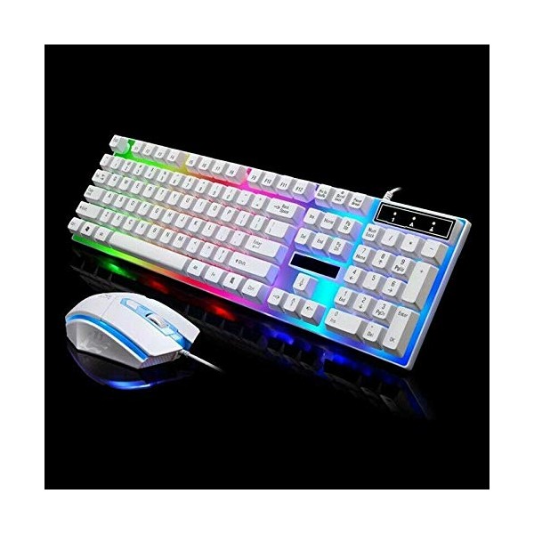 Rainbow Gaming Keyboard and Mouse Set Multi-Color Changing Backlight Mouse Mice White
