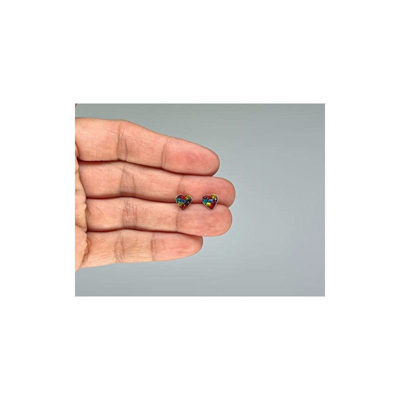 Rainbow Heart Earrings - 925 Sterling Silver with Multi Coloured Crystals Stones