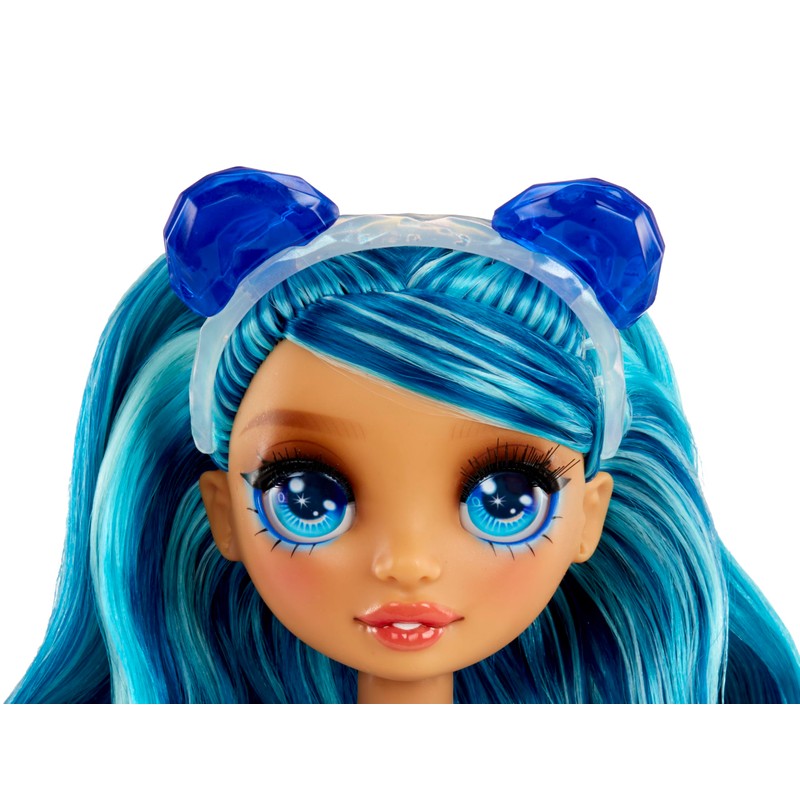 - SPARKLES IN BLUE: Skyler is dressed in her signature blue from head to toe with lots of sparkles. She has gorgeous, detailed features in her fashion, beautiful long blue hair, long eyelashes, and glass eyes