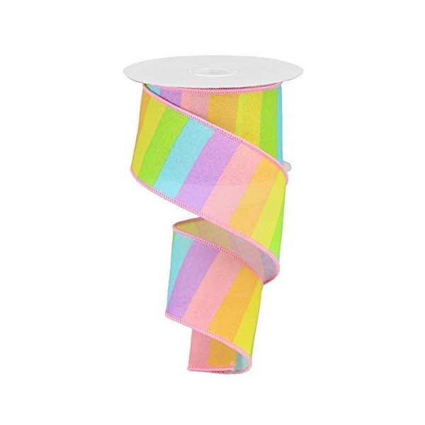 Rainbow Horizontal Stripe Canvas Wired Edge Ribbon - 10 Yards (Pastel Multi, 2.5")