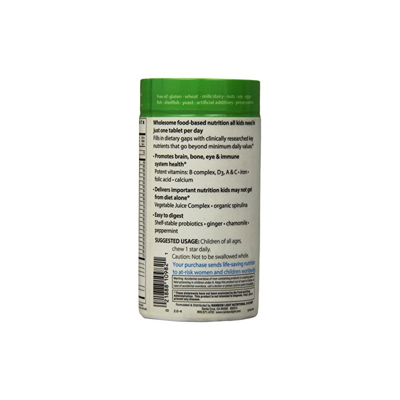 Rainbow Light Kids One MultiStars Chewable Tablets, Fruit Punch, 90 Count