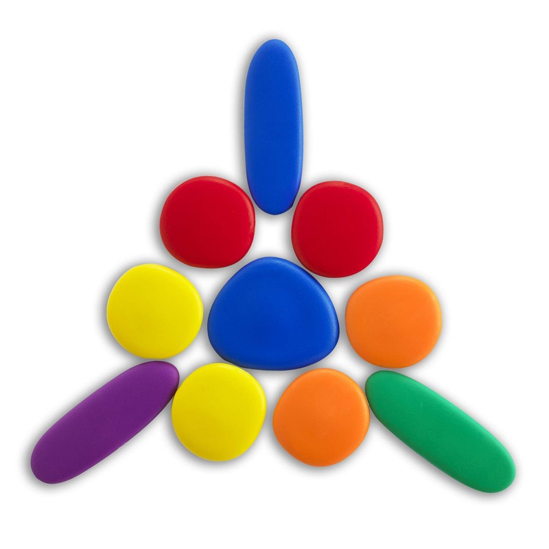 - BRIGHT AND TACTILE FOR MULTI-SENSORY LEARNING -- These lightweight stacking stones have a warm, rubbery feel. Children love their 6 bright colors and odd shapes!
