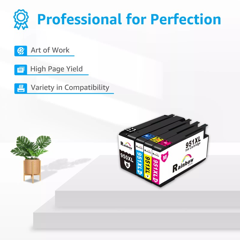 Rainbow-Printer 4 Pack New Gen Chip 950XL 951XL Ink For HP Officejet Pro 8610 Plus 8600 Printer