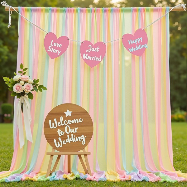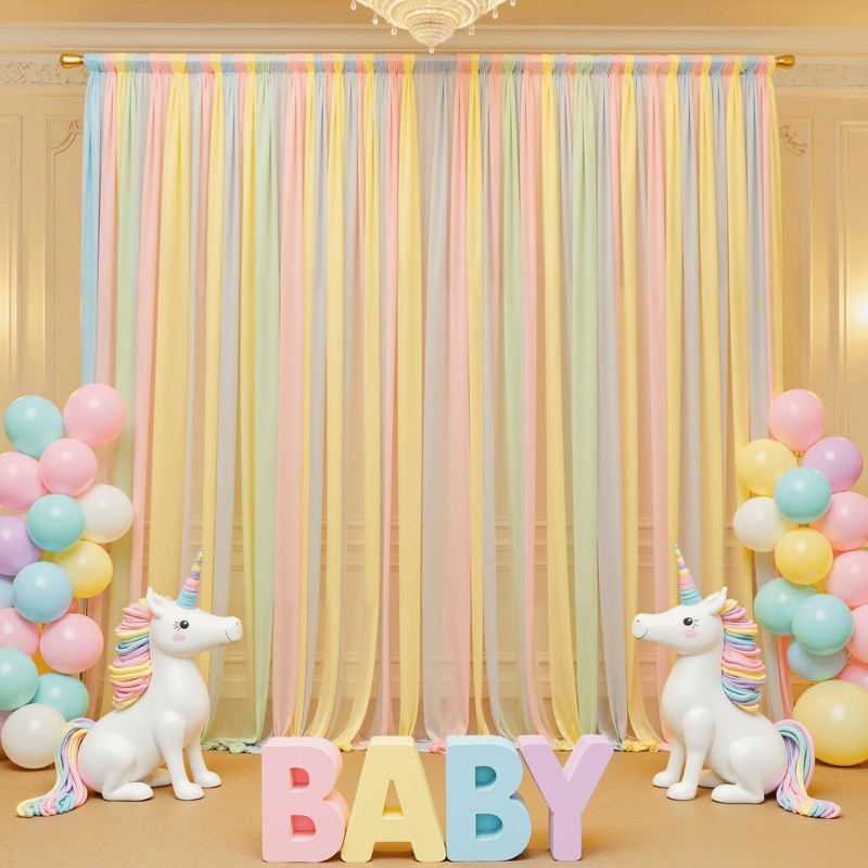 • Material: This pastel rainbow sheer backdrop curtain is made of 2 layers of high-quality, delicate, soft, and smooth tulle. Collapsible and no creases, natural drooping, washable and reusable; If you want backdrop curtains less transparent, you can buy 2 packs and more