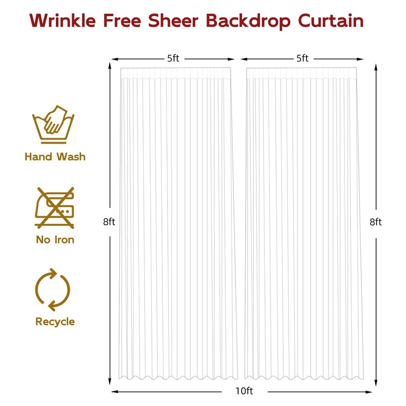 • 2 PCS 5 ft X 8 ft Pastel Rainbow Backdrop Curtains Size: 10 ft X 8 ft Tulle backdrop curtain package includes 2 pcs sheer tulle backdrop curtains, each curtain measures 5 ft(W) × 8 ft(H)