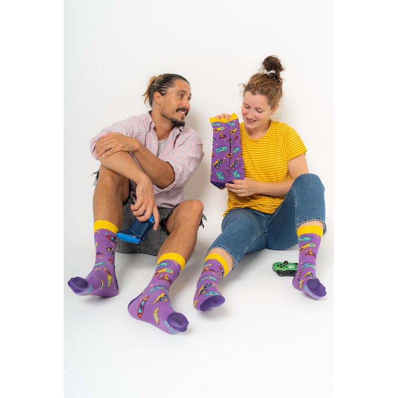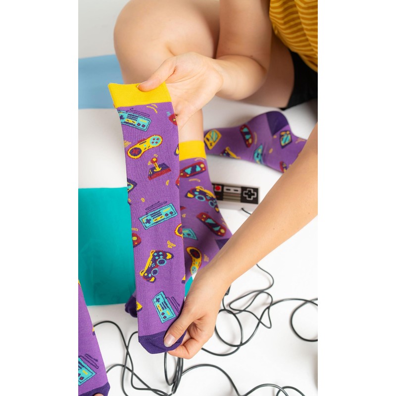 - GAMING HAS NO AGE – This is a pleasure accessible to all! Totally like the game socks Younger fans of consoles will certainly pay attention to the original design and colours in retro style. Older people will appreciate the quality of workmanship and comfortable wearing comfort of the socks. After all, they are made from Oeko-Tex certified cotton