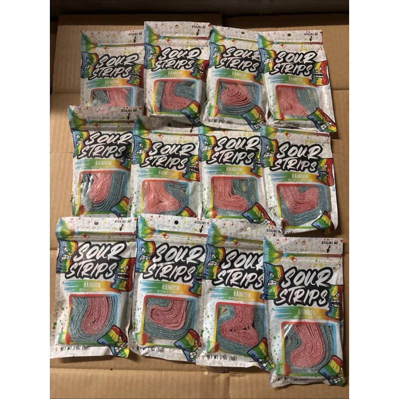 Rainbow Sour Strips Rainbow 12 Bags, 3.4oz Per, BB 10/26