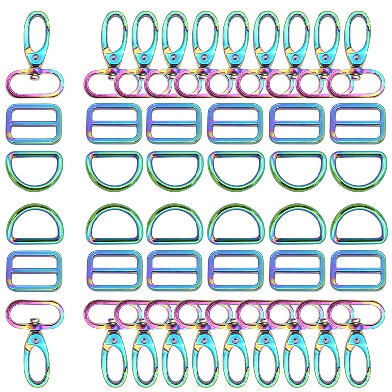 • 【What You Get】Four different colors :rainbow,silver,light gold,rose gold. 5 Sets with 5PCS swivel hooks(25mm),5PCS D rings (25mm), 5PCS slide buckles(25mm) . That enough for your craft projects and daily needs.