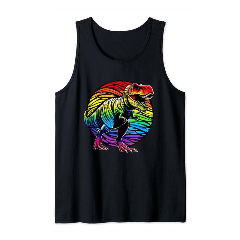 Rainbow T-Rex Tyrannosaurus Rex Rainbow Dinosaur Lovers Art Tank Top
