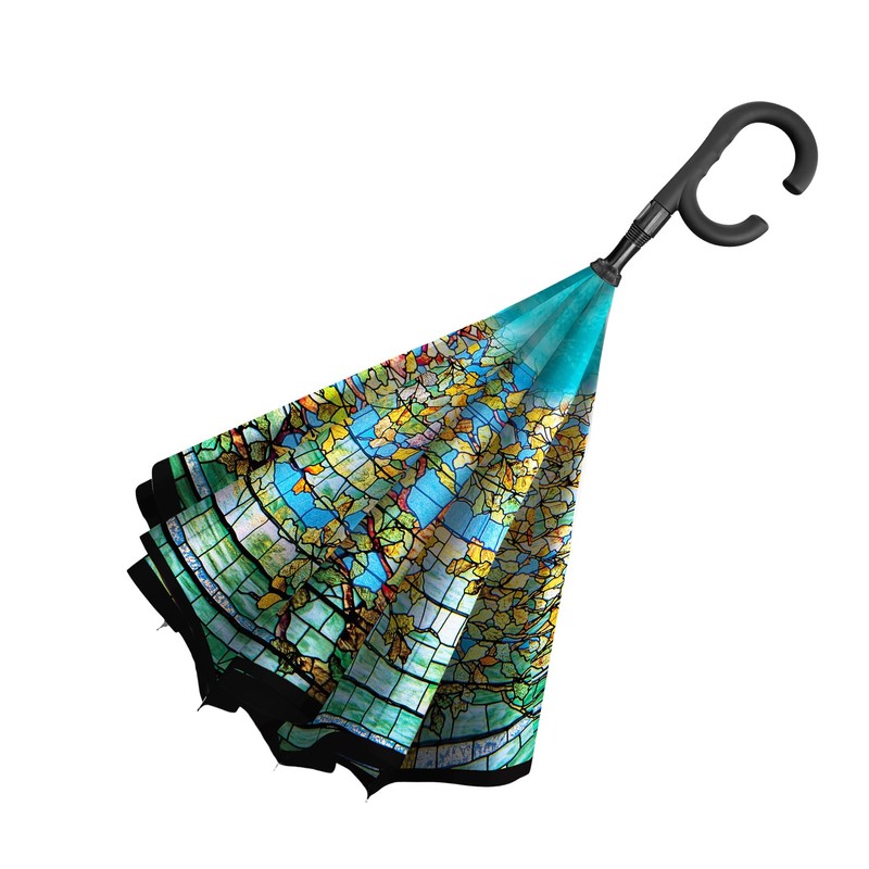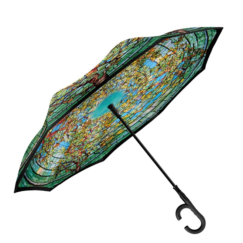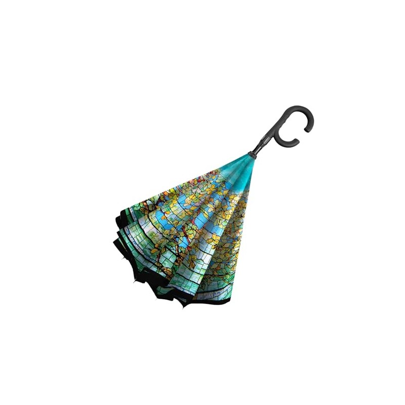 RainCaper Reverse Inverted (inside-out) Windproof Driehaus Maher Dome Designer Print Reverse-opening Upside Down Umbrella with C-shaped Handsfree Handle