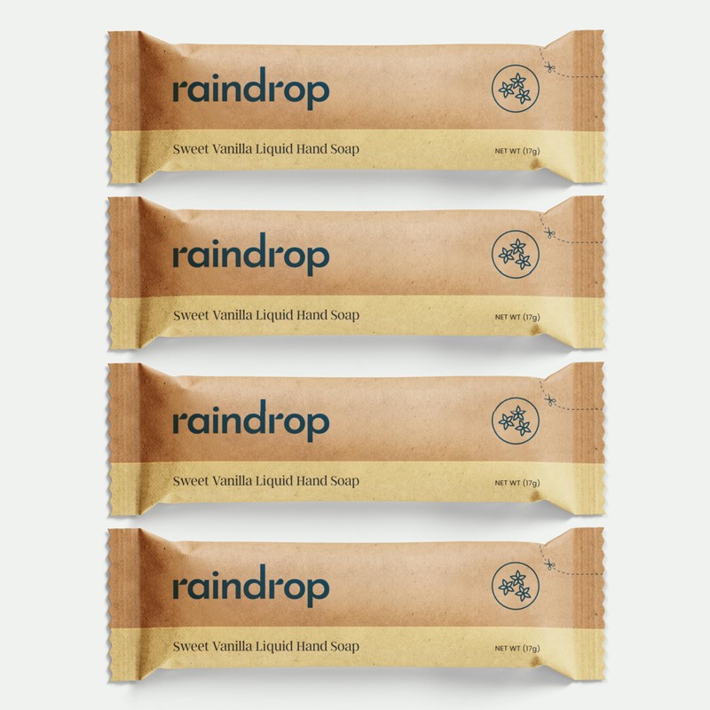 Raindrop Sustainable 4x Eco-friendly Hand Wash Refill Sachets, 1 Sachet = 1 Bottle of Soap 300 ml, Sweet Vanilla scented