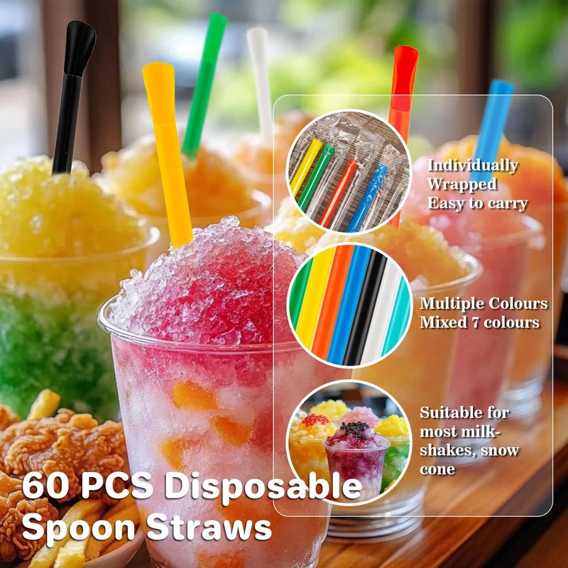 - Dual Function Spoon Straw Design: Spoon straws blend the functionality of a straw and a spoon, making it easier to savor thick beverages like milkshakes, smoothies, shave ice, and snow cones with our slushie straws