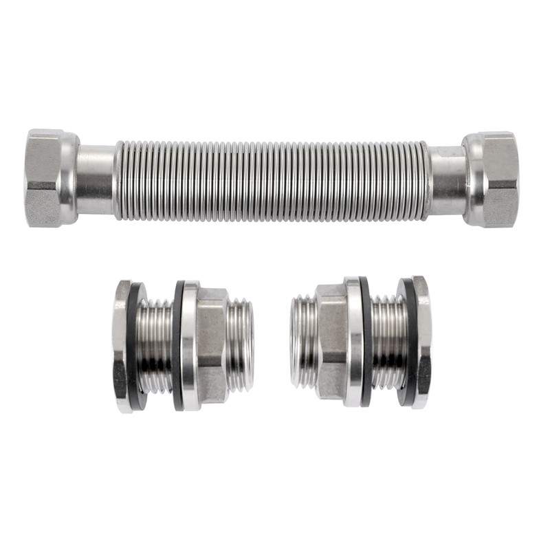 RAINPAL RBLSS5 Stainless Steel Rain Barrel Linking Kit (Two Stainless Steel Bulkhead Fittings and One 5” Stainless Steel Corrugated Hose Expandable to 7.5”) (2 Pack)