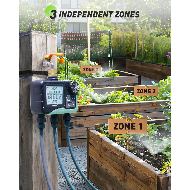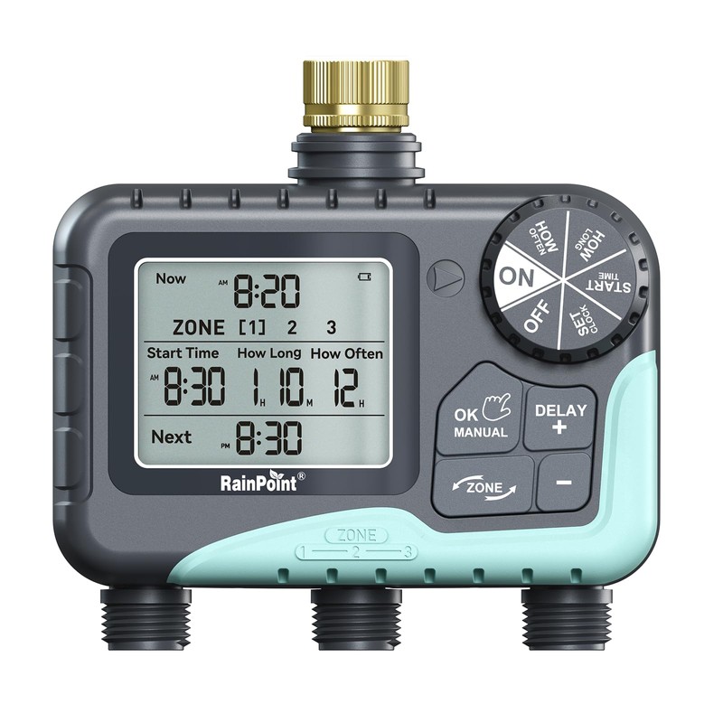 RAINPOINT 3 Zone Sprinkler Timer with Brass Inlet, Water Timer for Garden Hose,Rain Delay/Manual/Automatic Watering System, Hose,Hose Timers for Watering with IP65 Waterproof, Large LCD for Yard