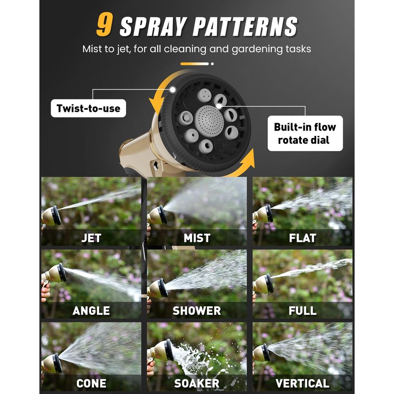 - FLOW-STOP-CONNECTOR: The garden hose sprayer comes with a flow-stop-connector to save the trouble of walking around to turn off the faucet, protect you from being sprayed when disconnecting the hose nozzle.