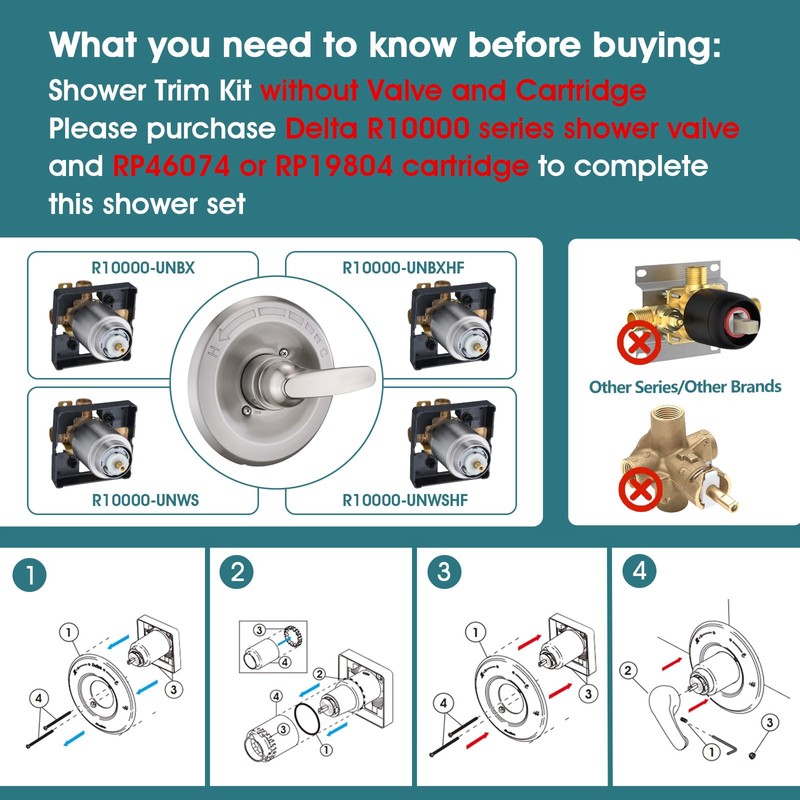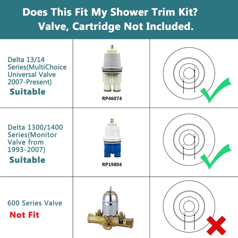 • Only Compatible with Delta: Compatible with Delta shower valve R10000-UNBX, R10000-UNBXHF, R10000-UNWS,R10000-UNWSHF, you need purchase RP46074 or RP19804 to to complete our shower trim kit