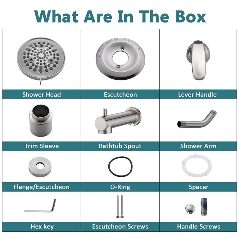 • Easy to Install: Included shower head, shower arm with flange, tub spout and trim kit without valve& catridge. Just follow the included instructions and you’re set for a quick, easy upgrade
