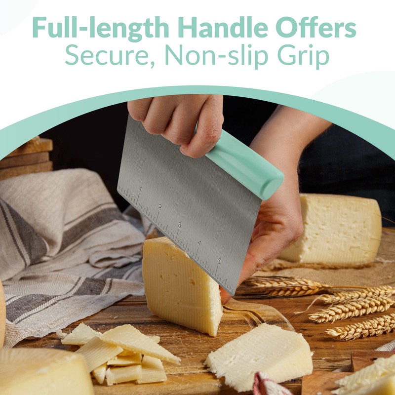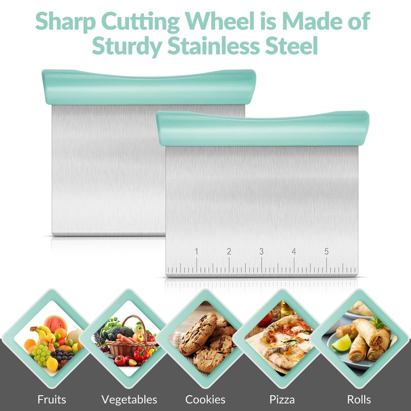 Rainspire Bench Scraper, Stainless Steel Dough Scraper, Pastry Scraper, Pizza and Dough Cutter Multi-Purpose Scraper/Chopper, Pizza Cutter Food Chopper Baking Supplies Kitchen Gadgets, Mint Green