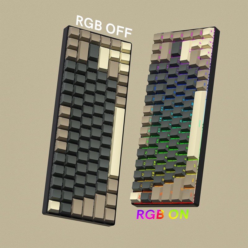 Rainy75 Shine Through Double Shot PBT Keycaps Set, Cherry Profile Custom Keycaps 60 65 75 100 Percent for 61/64/68/84/87/100/104/108 Retro Gaming Mechanical Keyboard, Grey Brown