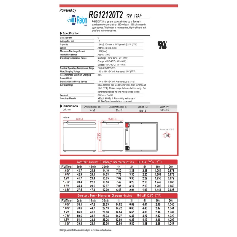 - Raion Power 12V 12Ah battery with T2 terminals is a direct replacement for Pride Go-Go Ultra X 4 Wheel OEM battery.
