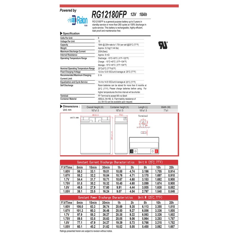 - Raion Power 12V 18Ah battery with FP terminals is a direct replacement for Thorsen Tools 11-418 Jumpstart / Compressor battery.