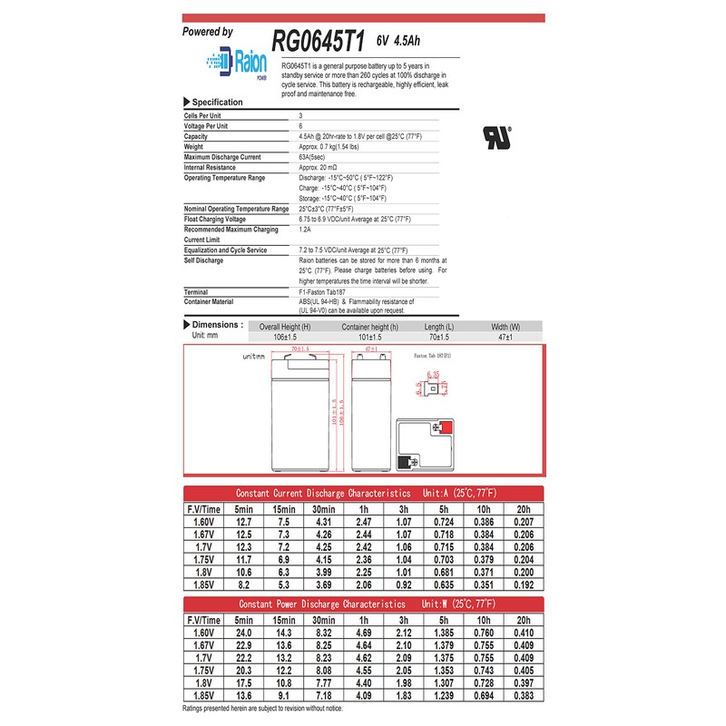 - Raion Power 6V 4.5Ah battery with T1 terminals is a direct replacement for Criticare Systems Pulse Oximeter 50245 battery.