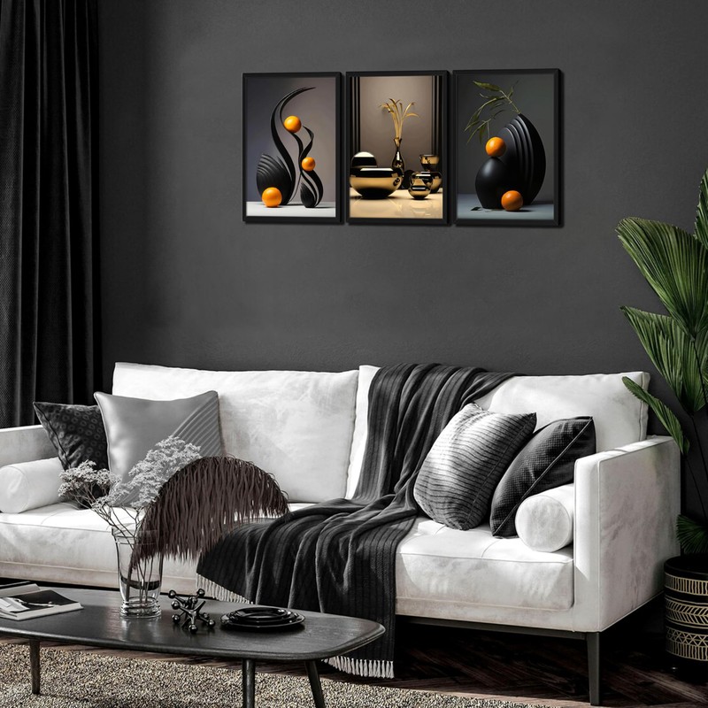 - 【Modern Abstract Wall Art】This framed canvas wall art set of 3 features a bright orange still life with vases and smooth surface textures. The bold abstract style adds energy and artistic charm, creating a lively atmosphere for any living space.