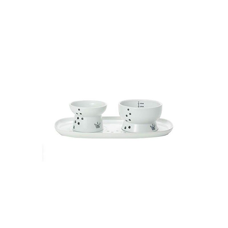 - Dimensions: Raised Food Bowl (4.3" x 4.3" x 2.9"), Raised Water Bowl (5.1" x 5.1" x 2.9"), Tray (13.5" x 7.8" x 0.7")