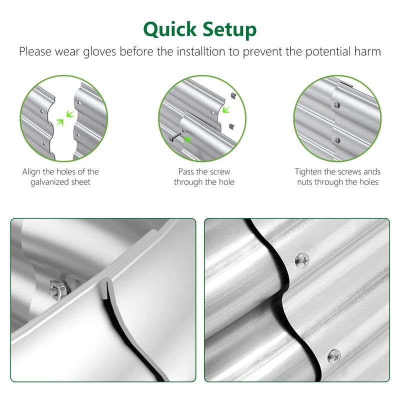 - 【Durable Material】This raised bed is made of thickened galvanized metal, which has strong rust and corrosion resistance. Single galvanized sheet thickness 1.2mm. It's a good helper for your garden.
