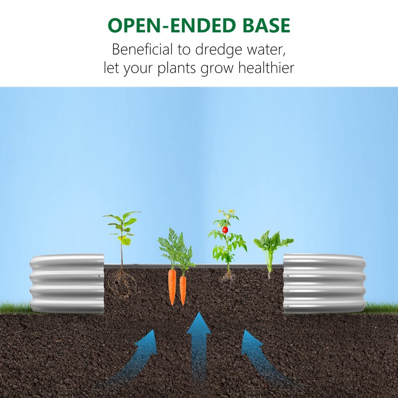 - 【Open-bottom Planter Box 】This raised bed is design with an open base which can provides good drainage and effectively protects the roots from rotting due to excessive watering, so there is no need to worry in rainy or snowy weather. Large capacity metal garden bed allow you to enjoy fresh and healthy vegetables and fruits, flowers and herbs in your backyard, garden, balcony and greenhouse.