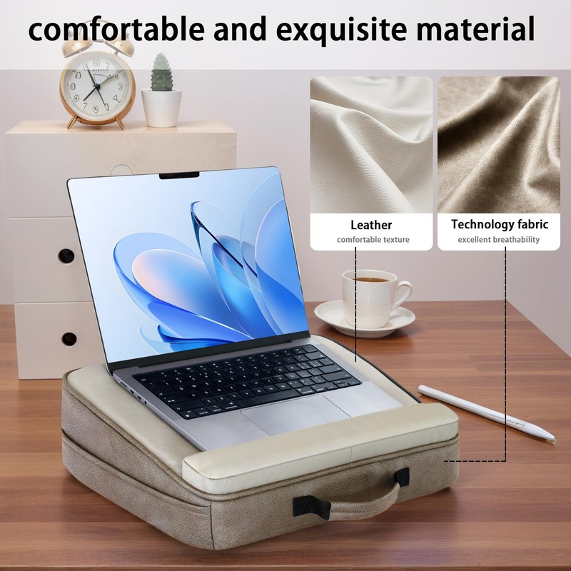 - Sturdy & Breathable Laptop Support The leather surface of this lap desk with cushion ensures stable support for laptops up to 15.6 inches. Its breathable lap pillow tray prevents overheating while maintaining durabilityno sagging or deformation, even under heavy use. Perfect for adults seeking a lap desk that balances comfort and practicality.