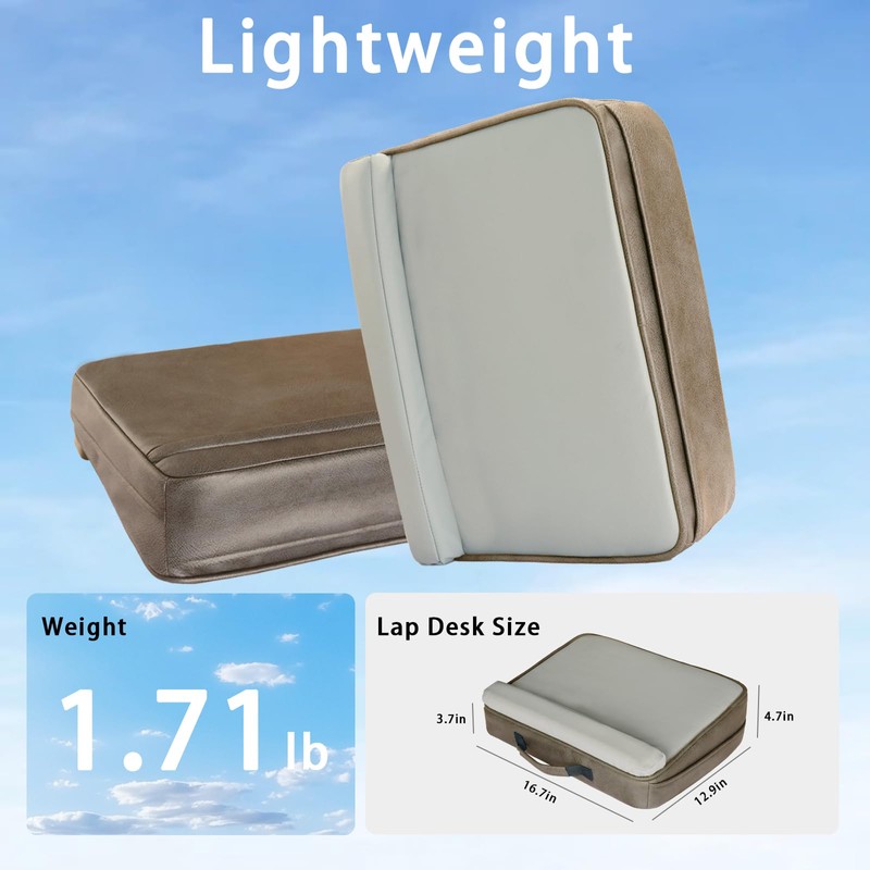 - Ergonomic & Ultra-Lightweight Lap Desk Crafted with ergonomic principles, this lap desk for laptop features a 1.6lb ultra-lightweight design to eliminate leg pressure. The bottom is lined with high-quality leather for a plush, comfortable feel, making it ideal for extended use as a cushioned lap desk or portable lap table.