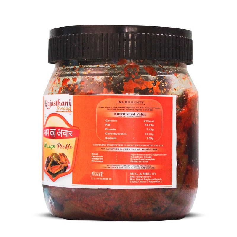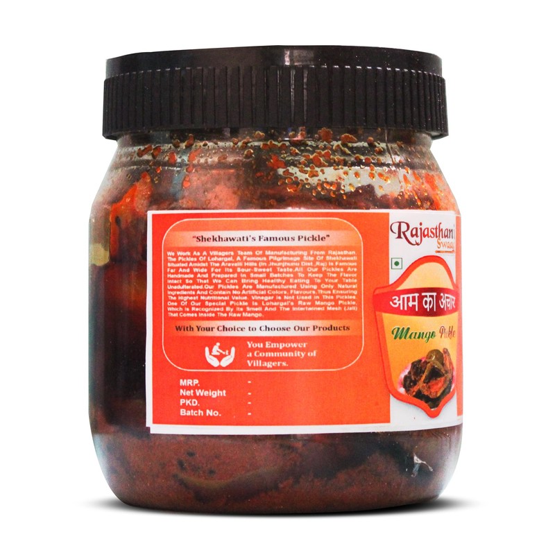 Rajasthani Swaad Raw Mango Pickle Homemade Aam Ka Achar Dry Masaledar Organic Keri Mango Pickle (No Preservative, No Vinegar,Natural Sourness, Less oil) Special Pickle Of Lohargarh | Jar Of 800 Grams