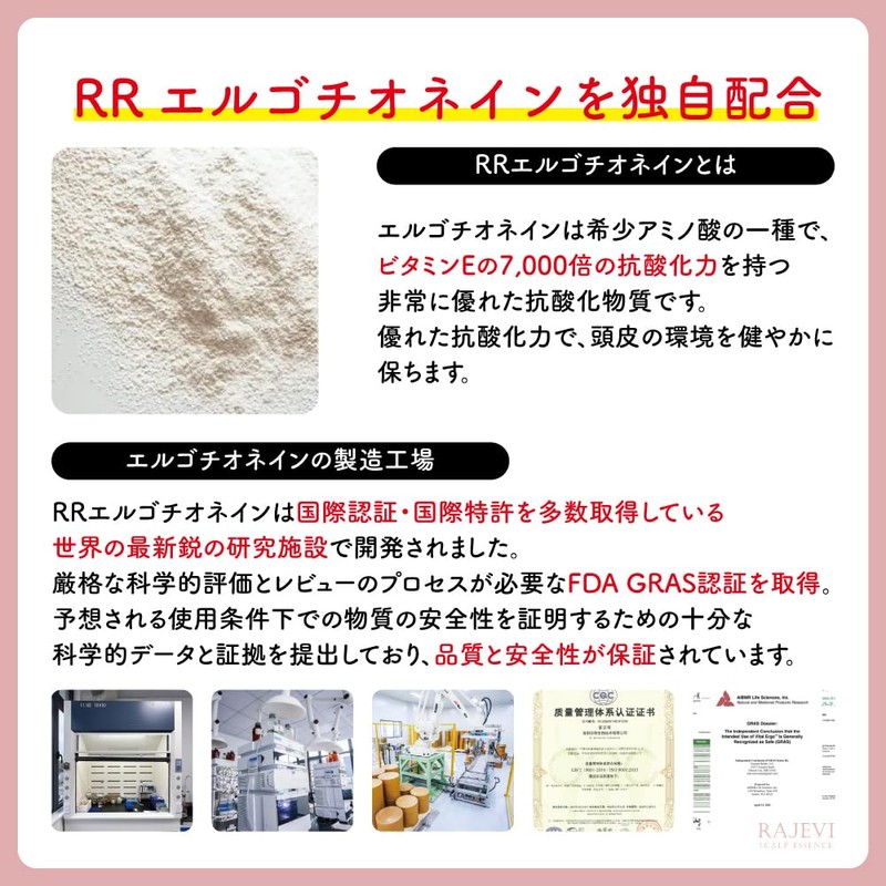 - Uses ultra-high value ingredients made specifically for dander and itchy: We use a high blend of RR Ergothionine developed for dandritus and itchy. The antioxidant power of the ingredients is 7,000 times more than Vitamin E. It is also used first in Japan, so you can expect its effectiveness