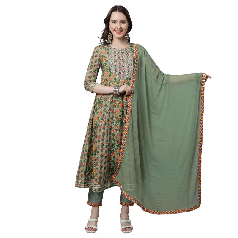 Rajnandini Women's Pure Cotton Embroidered Kurta Set With Dupatta (JOPLVL310-XXL_Pista Green_XXL)