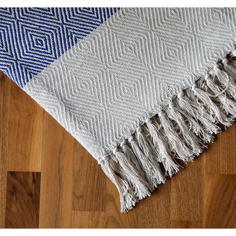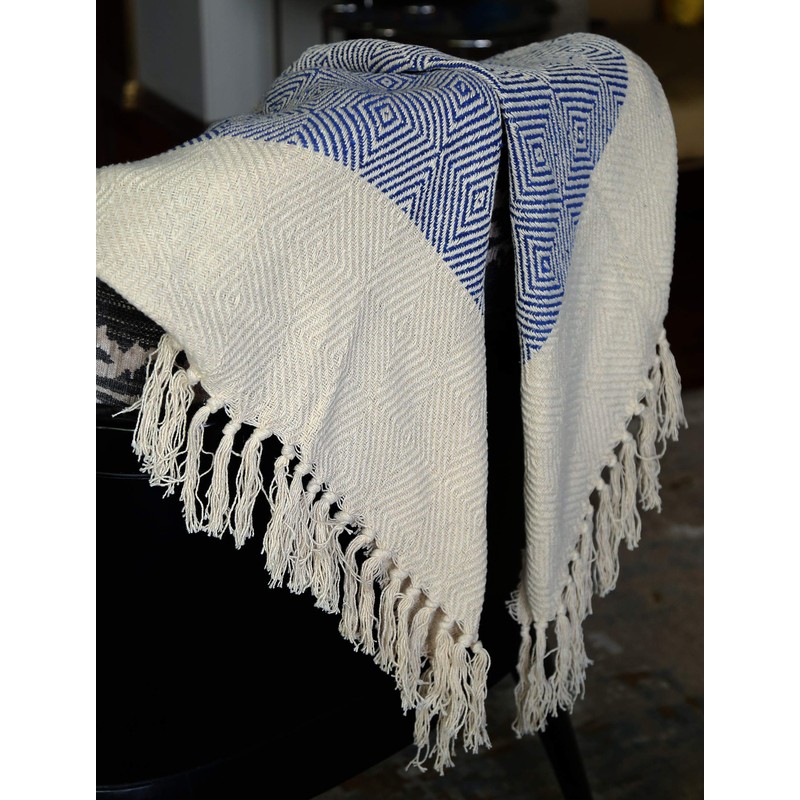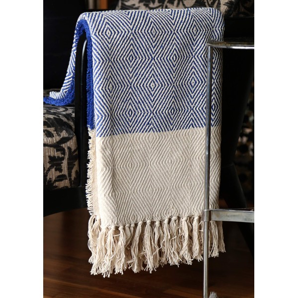 RAJRANG Blue Throw Blanket with Decorative Tassel Cotton Rustic Throws Geometric Knitted Soft and Cozy Boho Blankets - 50 x 60 Inches