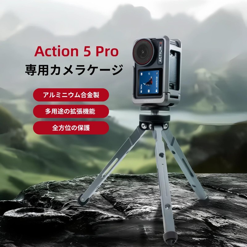 rakimo Camera Cage, For DJI Osmo Action 5 Pro/Action 4/Action 3, Extended & Protected, Aluminum Alloy, Quick Release, Protective Frame, Vertical and Horizontal Switching, Tripod, Selfie Stick,
