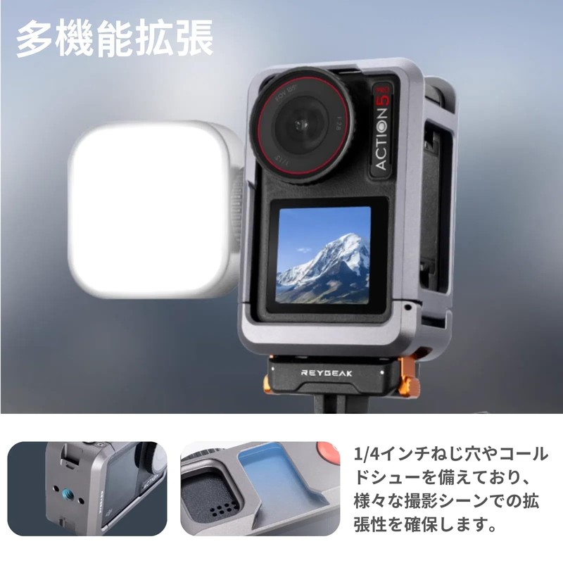 - Dedicated Camera Cage: The cage for DJI Osmo Action 5 Pro / Action 4 / Action 3 camera is designed to protect and expand your shooting potential for DJI Osmo Action 5 Pro/Action 4/Action 3 camera. This will not interfere with the functions of camera battery replacement, terminals, buttons, etc
